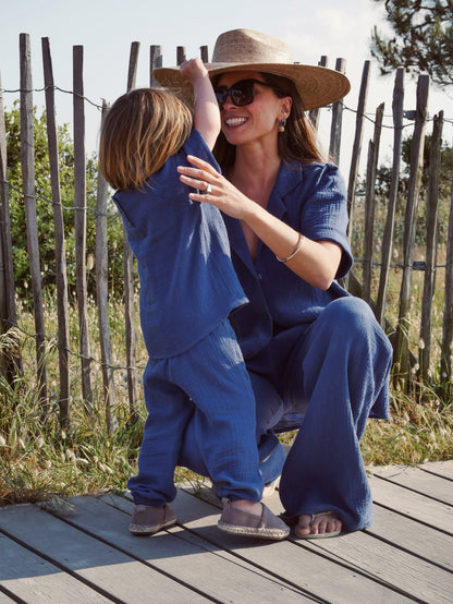 Cet ensemble en gaze de coton a été fabriqué en France, dans le respect du savoir-faire traditionnel.